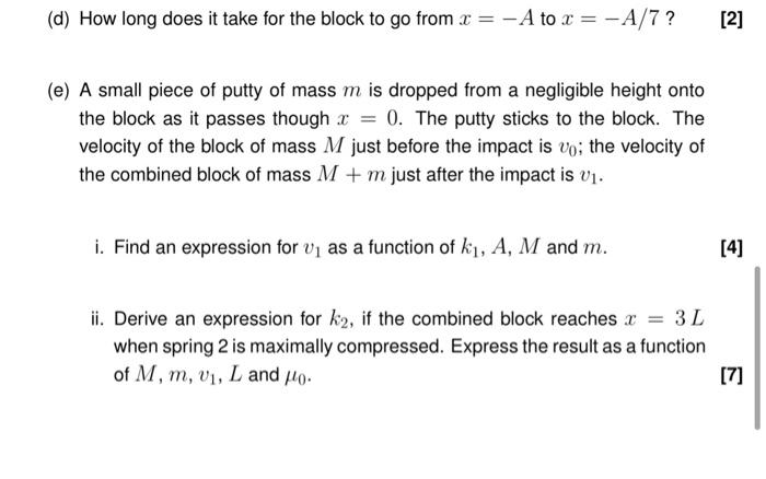 A 00500-kg wad of putty is thrown horizontally at the block hitting it with a speed of 230 ms and sticking. A 00500-kg wad of putty is thrown horizontally at the block hitting it with a speed of 230 ms and sticking. A 0430-kg block is attached to a horizontal spring that is at its equilibrium length and whose force constant is 200 Nm. The block rests on a fi-ictionless surface. How far does the putty-block system compress the spring. The work done on a spring to compress it a distance d is given by 12kd2. You have realized an important fact. The amount of mass attached to the spring does not affect the work required to stretch or compress the spring. Spring A requires more energy than spring B.